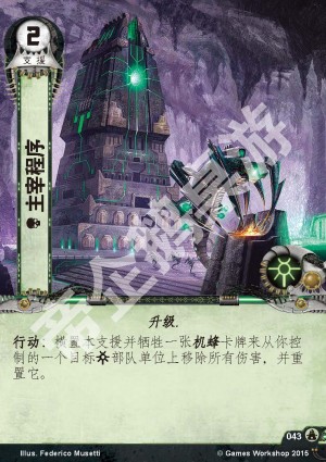文本行动:横置本支援并牺牲一张机锋卡牌来从你控制的一个目标太空死灵部队单位上移除所有伤害,并重置它。